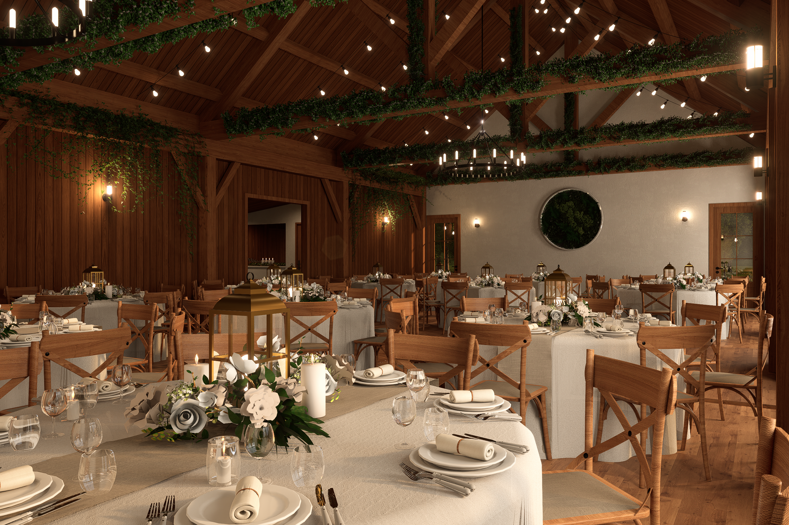 2000sqft barn 110 Guests (2) Bathrooms (100) Chairs (12) 60" Tables (1) 48" Table Cafe lights Heat / AC (35) Parking Spaces 100% Generator Backup